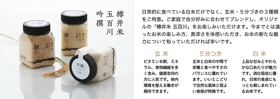 コシヒカリの突然変異種である五百川は、コシヒカリの味わいを強く受け継いでいます。食味の良さを測る数値は早場米の中でもトップクラス。さっぱりとした甘みと程よい粘り気、炊き上がりはツヤがあり、風味豊か。冷めても食味が落ちず、夏に美味しい新米が楽しめます。